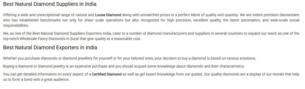 There is nothing like 'minimum order quantity'. You can order any quantity of small loose diamonds, natural melee diamonds or calibrated diamonds through our website. For substantially large quantities of natural diamonds or wholesale melee diamonds.